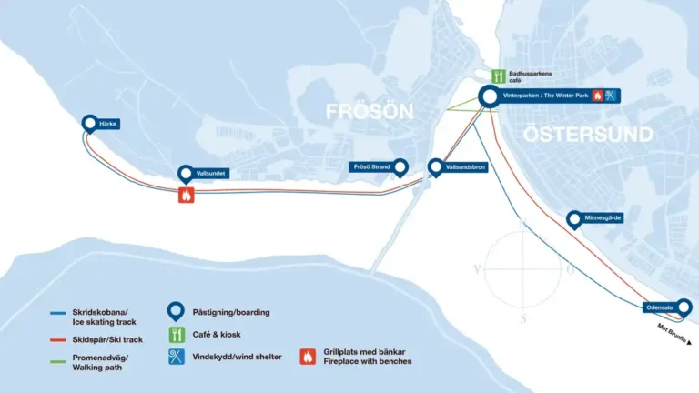 Här finns massor av saker att upptäcka, både för stora och små. Upplev lekland, hockeyplan, vinterbad, grillplatser och Solplayan. Och Medvinden förstås, en milslång långfärdskridskobana med fjällen i horisonten.